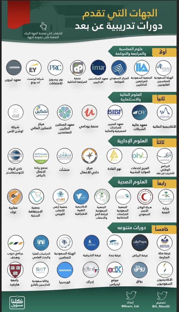 صورة تجمع كل الجهات الحكومية والأهلية اللي تقدم دورات لمختلف المجالات المطلوبة في سوق العمل